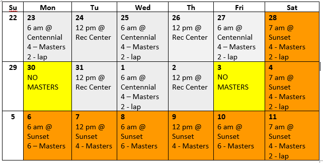 Updated 5/22/2022 – Sunset will have only 6 lanes this summer. Masters will get 4 of those 6 lanes on Tuesdays, Thursdays, and Saturdays.