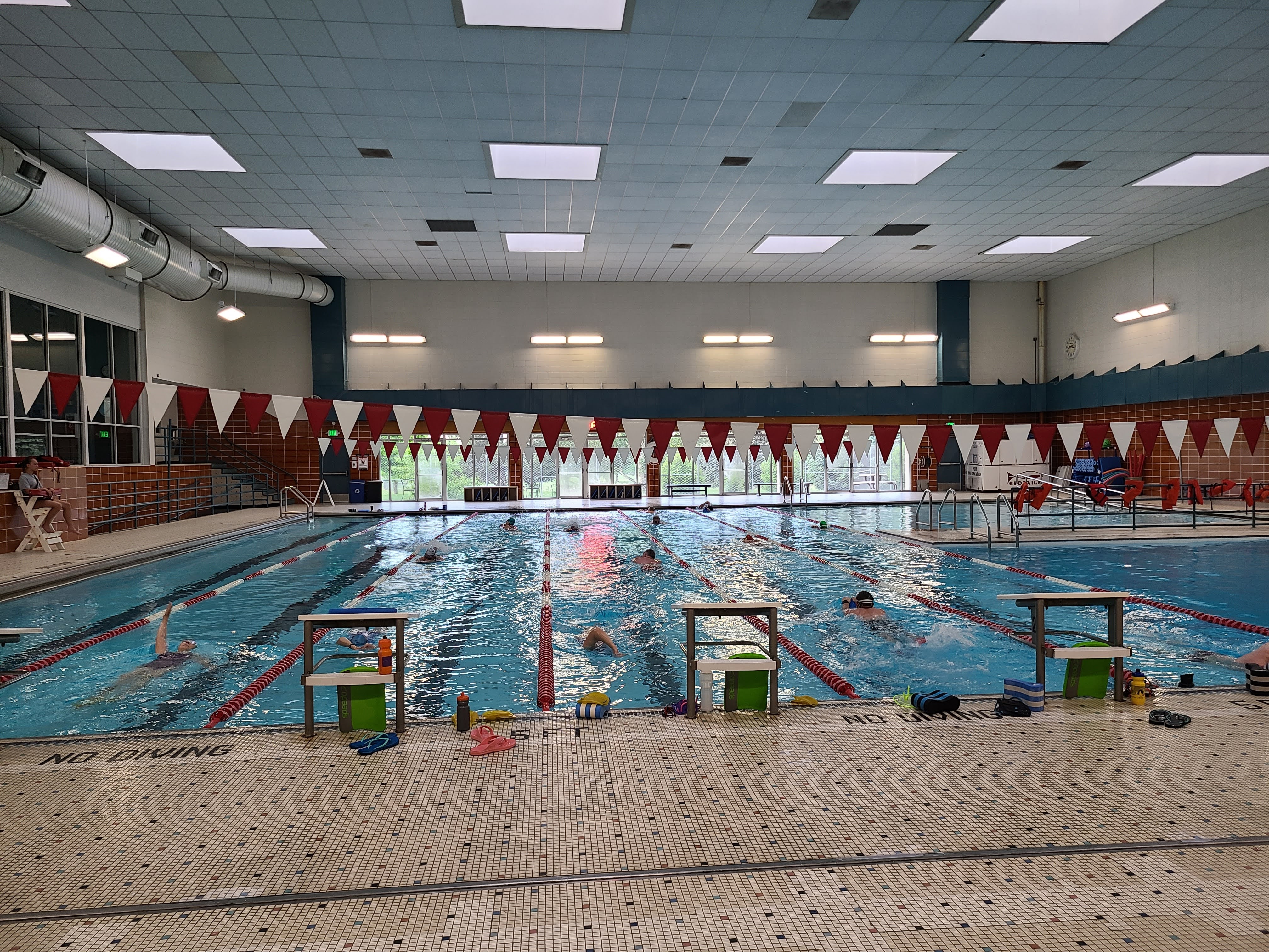 Only one more swim indoors — Friday morning (5/30) — before we’re completely switched over to Sunset Pool. Thursday (5/29) at noon and Saturday (5/31) at 8 am will be outside this week.